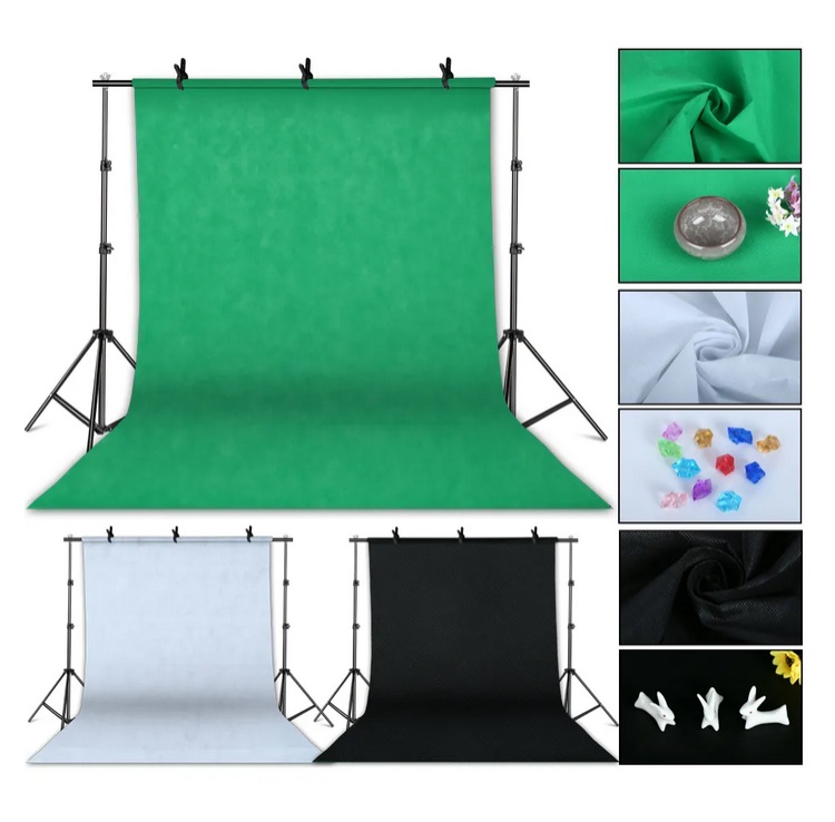 Kit de estúdio - fundos e iluminação. Estrutura dos fundos extensível em altura até 1,9m e 3m de largura.