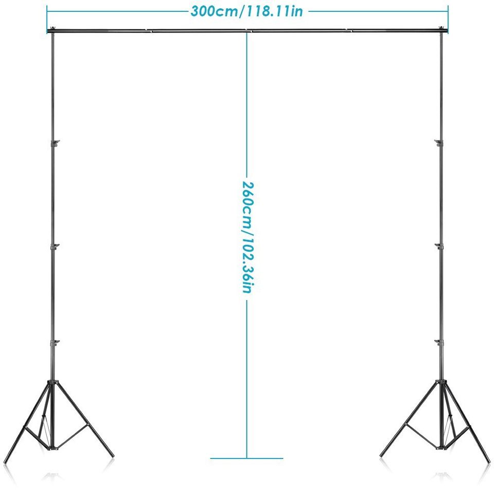 Estrutura dos fundos extensível em altura até 2,50m e 3m de largura.