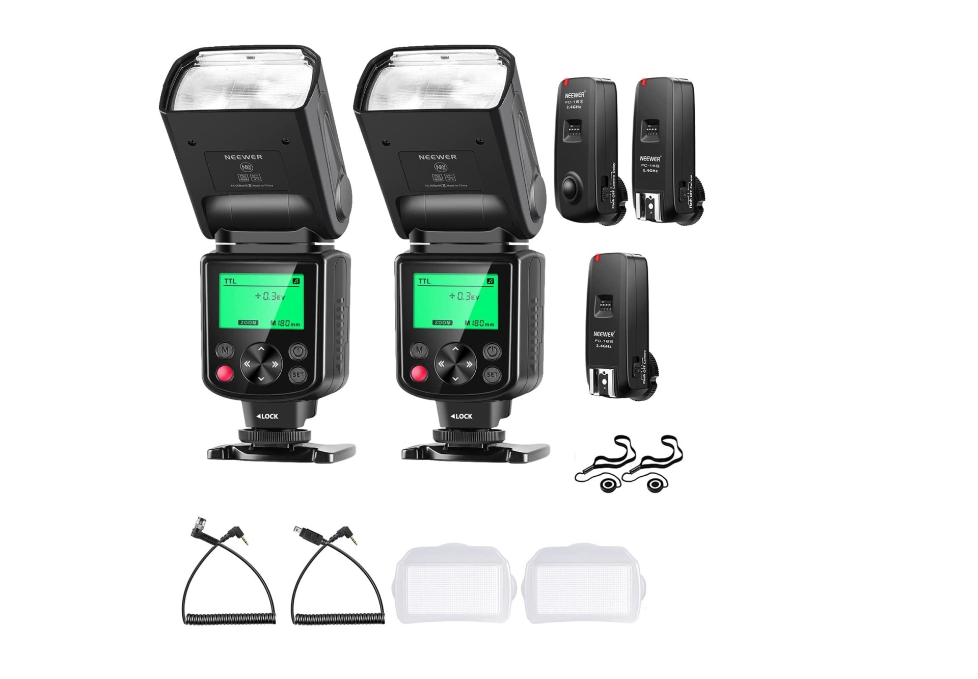 Kit flashes TTL com disparadores + acessórios para Nikon / Canon