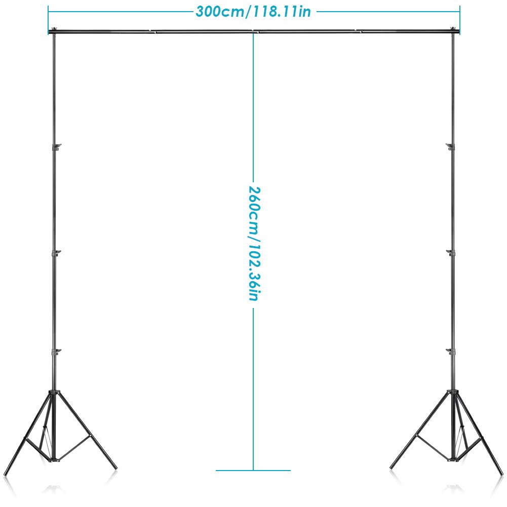 Este sistema de suporte inferior é leve e extensível para praticamente qualquer aplicação. É composto de dois suportes de tripé e quatro secções de barra, Estágios sólidos de 3 estágios de segurança, A altura pode ser ajustada até um máximo de 2,5m A largura pode ser ajustada para até um máximo de 3m. Os fundos podem ser fixados na horizontal. A barra transversal consiste em quatro secções, o que simplifica o ajuste da largura.