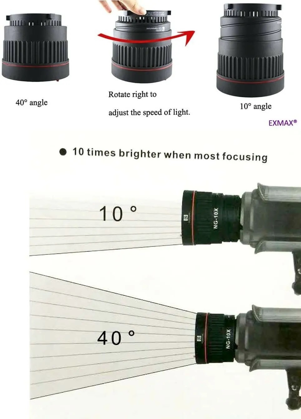 Lente de fresnel telescópica que pode ser usada para controlar o ângulo e a intensidade da luz de estúdio.