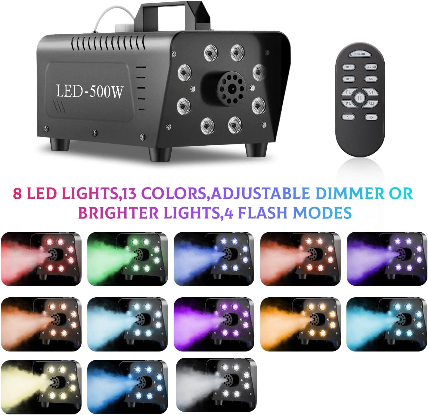 Máquina de fumo 500W 8 LEDS e 13 cores e 4 modos com comando