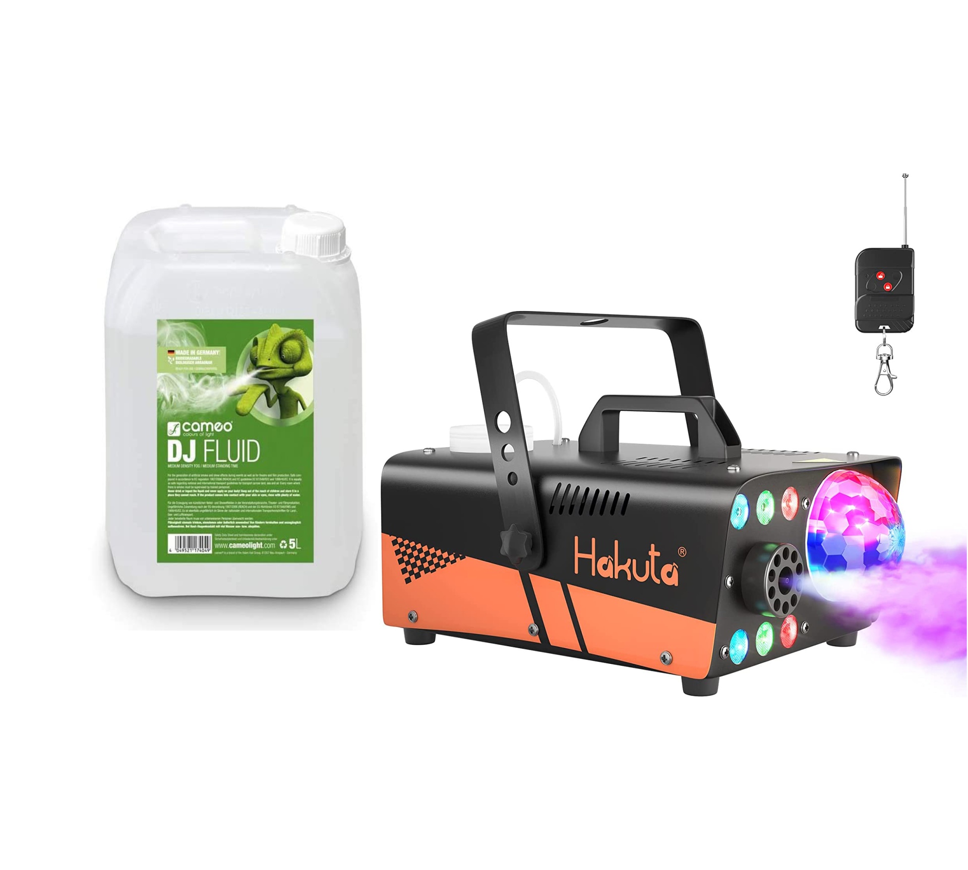 Com o interruptor na parte traseira da máquina, pode controlar coordenadamente as luzes da bola da discoteca, as luzes LED RGB e o efeito de nevoeiro ou mover manualmente. Versão eco com o mesmo efeito. Função de roteamento automático. Basta colocar liquido no tanque, ligar a fonte de alimentação e pressionar o botão "Pulverização automática". Após um tempo de pré-aquecimento de 3 minutos, a máquina de fumocomeça a pulverizar. Operação separador: as luzes de nevoeiro e LED podem funcionar separadamente do fumo. Recipiente de líquido de 300 ml para produzir névoa contínua. Pára automaticamente quando o líquido de névoa se esgota. P otência de 600 W permite que a máquina de nevoeiro gere uma saída de 2300 CFM (pé cúbico/minuto) no alcance de 2 a 3 metros. Material durável metálico, leve, portátil, resistente e durável. Possui uma dissipação de calor muito boa e a construção robusta e sólida leva a uma longa duração Como a máquina é fornecida com um suporte de fixação, pode ser instalado ou aumentado, ou colocado no chão.