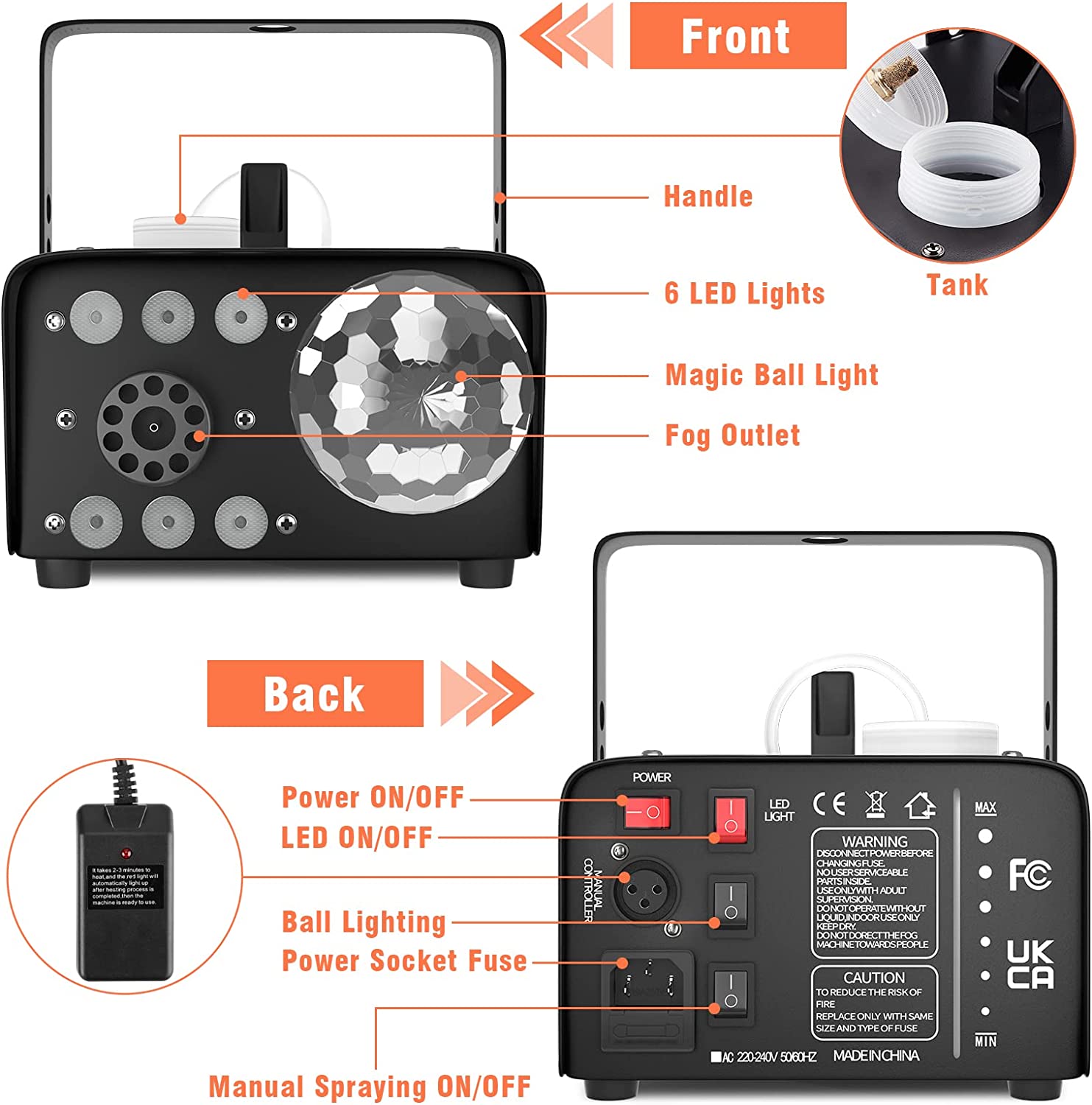Máquina de fumo com bola de luzes LED RGB, 600W Fog Machine, 2300 CFM
