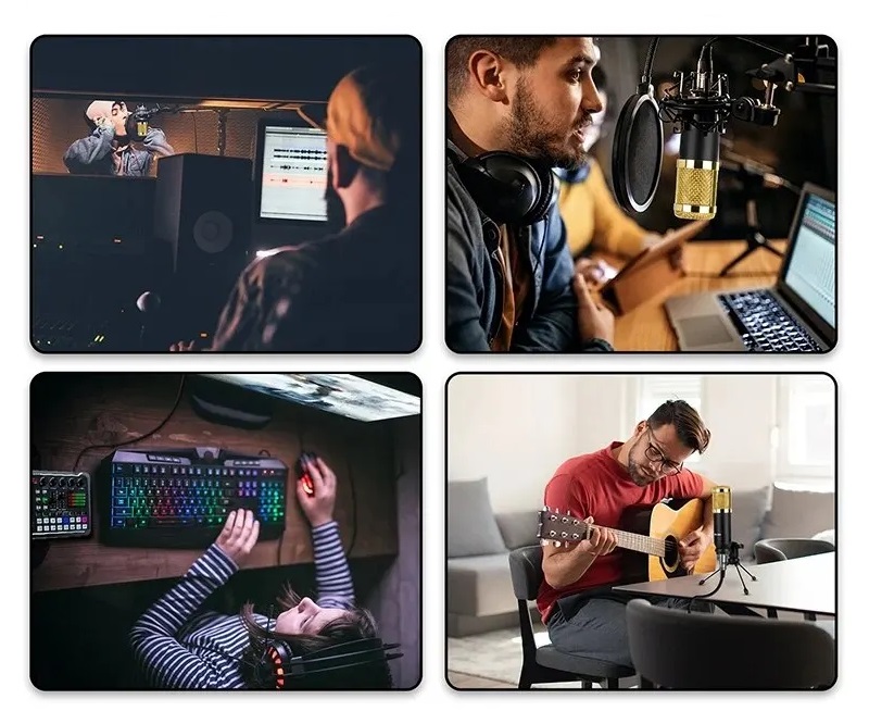 Os kits de microfone multi permitem gravar várias fontes sonoras simultaneamente, tornando-a ideal para eventos ao vivo e sessões de grupo.