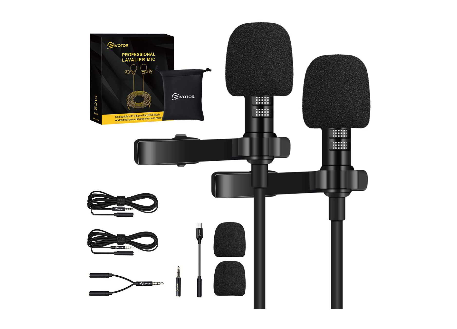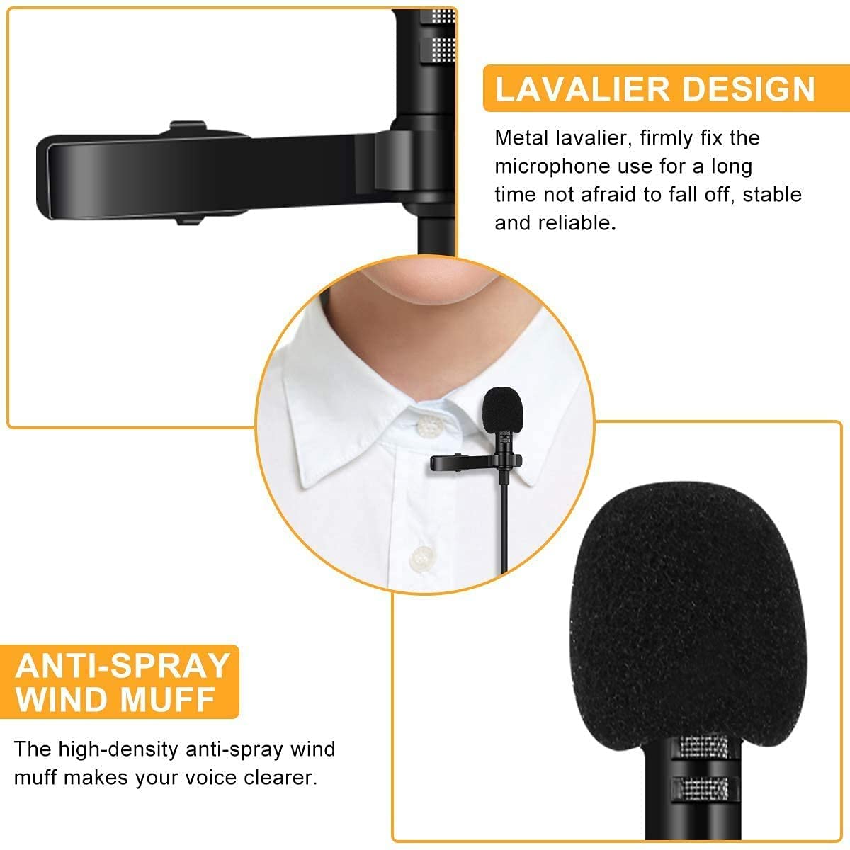 Atende aos requisitos de gravação simultânea de duas pessoas, especialmente adequado para entrevistas de 2 pessoas. Núcleo de um microfone condensador profissional, que possui uma ampla resposta de frequência e alta sensibilidade. Equipado com a função de redução de ruído. Encaixe jack 3,5 mm, adaptador type C, um cabo de conexão Y, adaptador TRS / TRRS (4-3 pinos) para telemóvel, PC, DSLR, etc. Clipe de metal permite que você prenda facilmente no pescoço, gravata ou bolso, fácil de configurar Extensão de 2m e um cabo de conexão em forma de Y de acordo com as preferências.