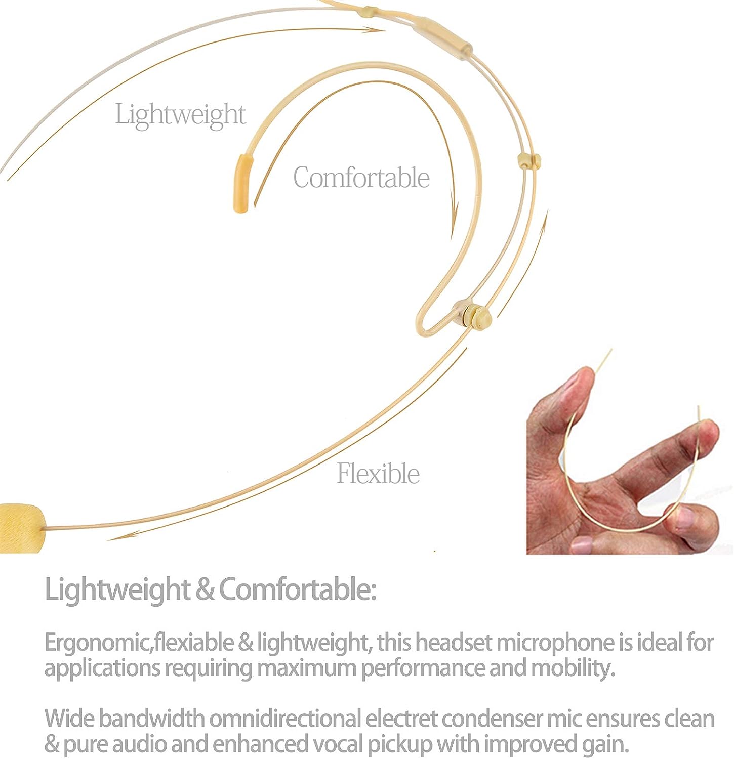 Microfone Headworn cor pele discreto suporte orelha