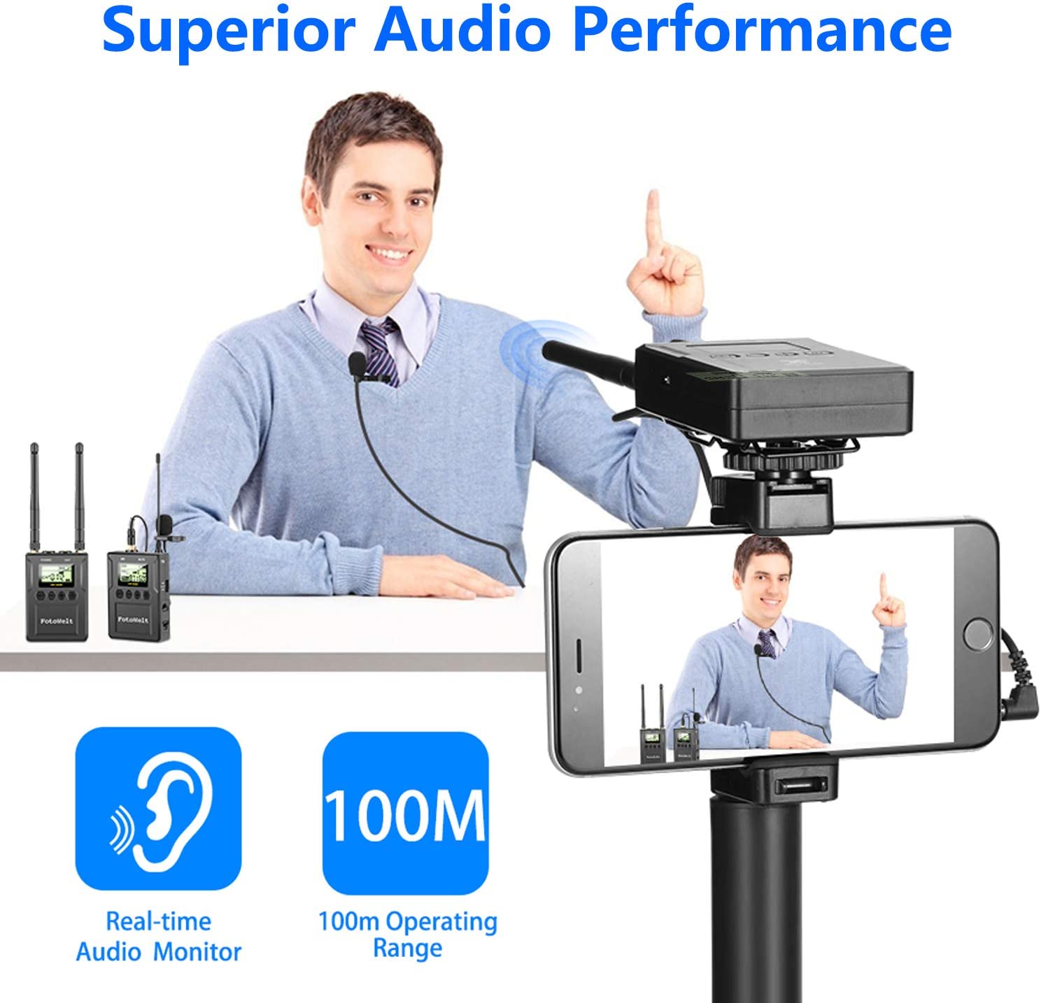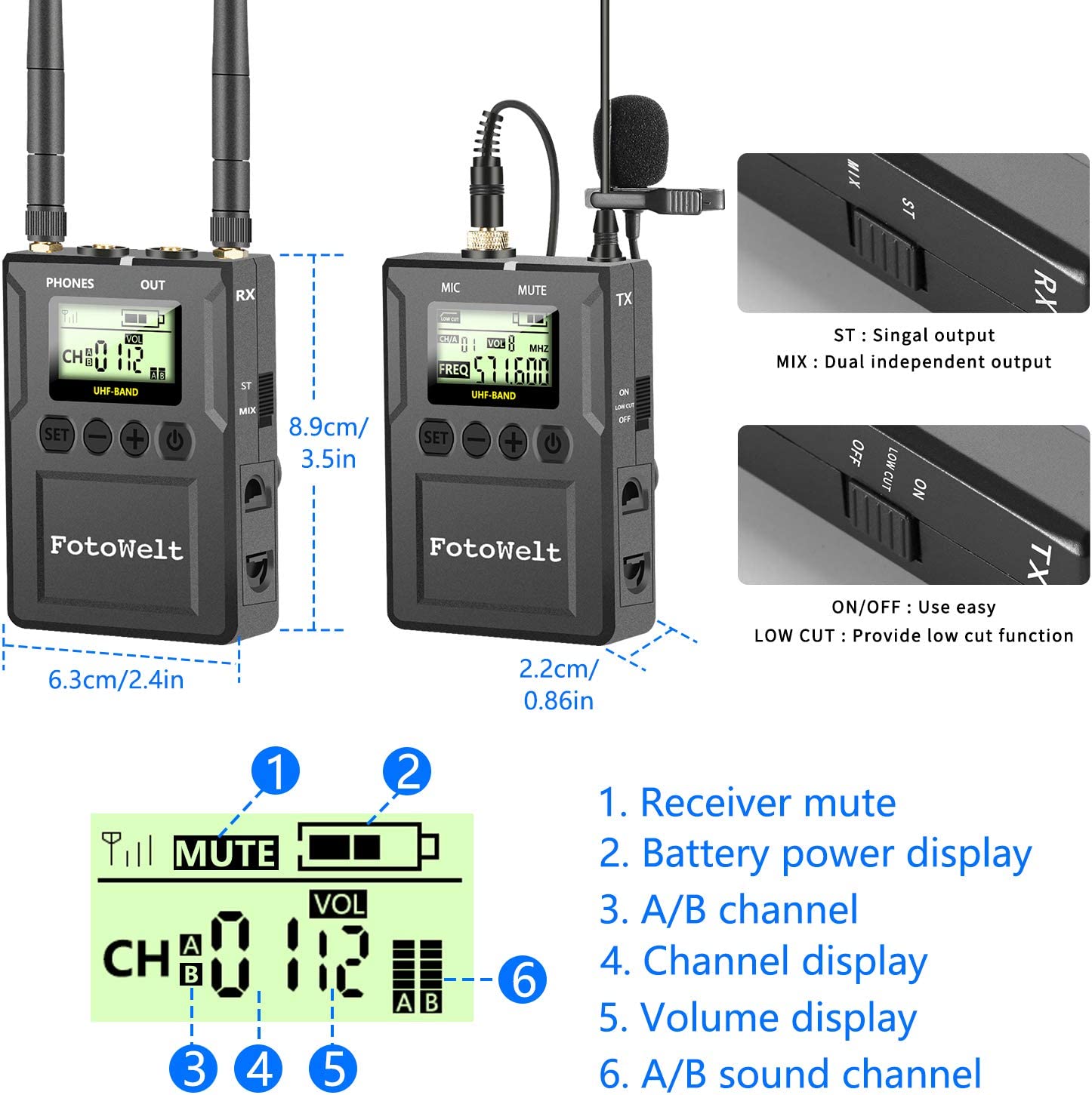 Canal duplo: equipado com um transmissor de 2 unidades e um recetor de canal duplo de alto desempenho de 1 unidade.