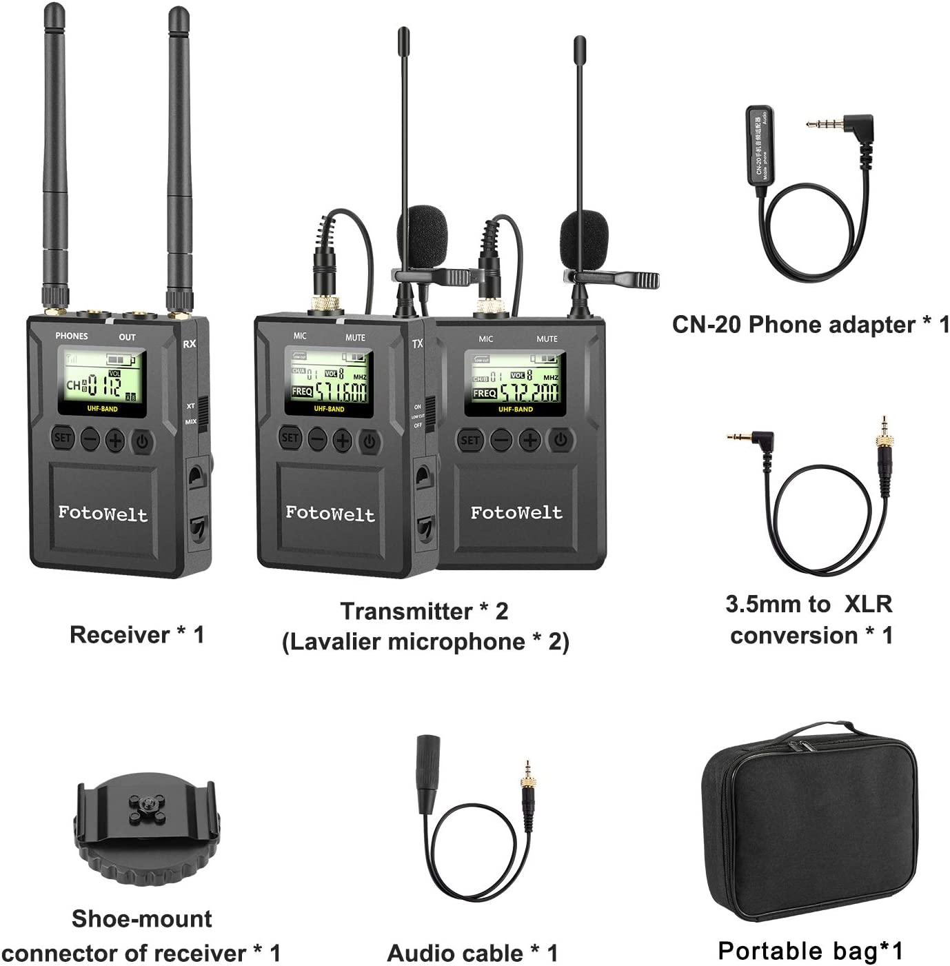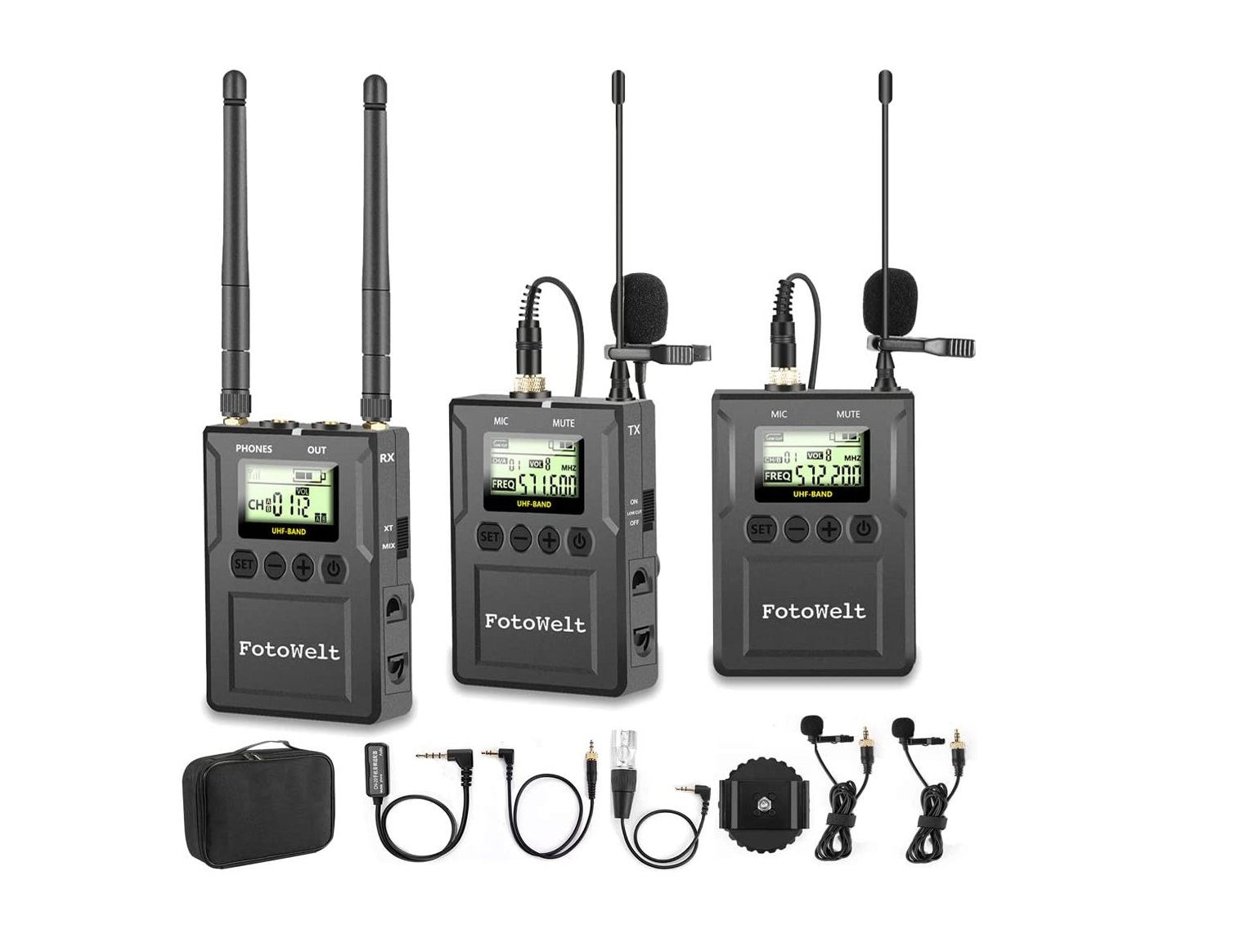 Microfone sem fios 2 emissores 1 receptor UHF