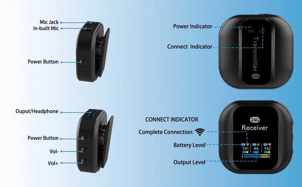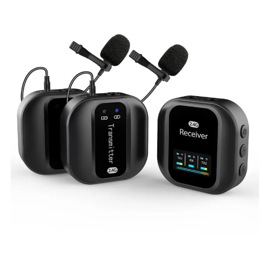 Microfone de lapela sem fio de canal duplo : O microfone vem com dois canais, permitindo que você capture o som de duas fontes ao mesmo tempo.