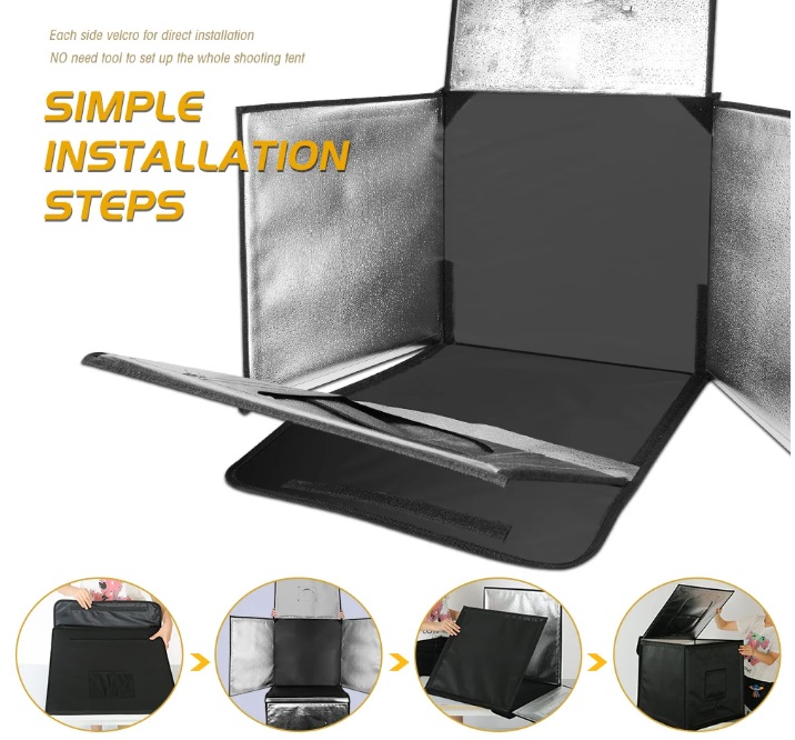 Transforme qualquer mesa num mini estúdio profissional com esta Caixa de Estúdio Fotográfico Portátil Lightbox. Ideal para fotografar produtos com iluminação uniforme e fundo limpo, perfeita para lojas online, redes sociais ou catálogos.
