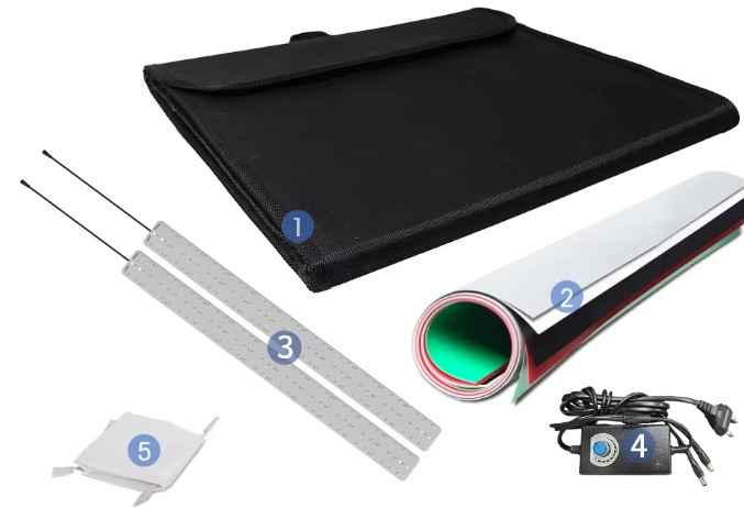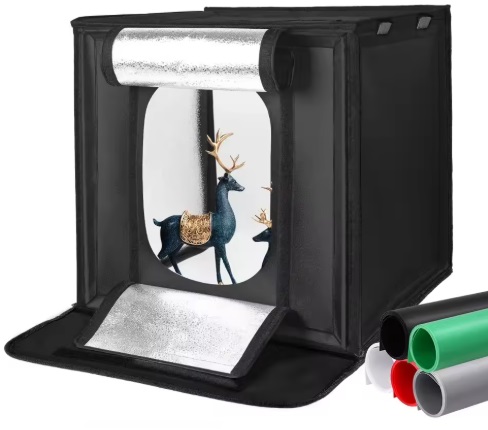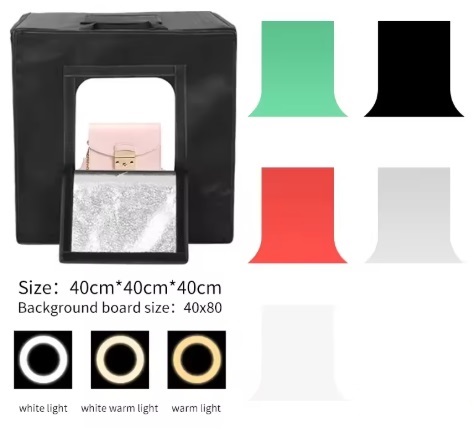 Mini estudio portátil 40x40 cm com 5 fundos e iluminação incorporada