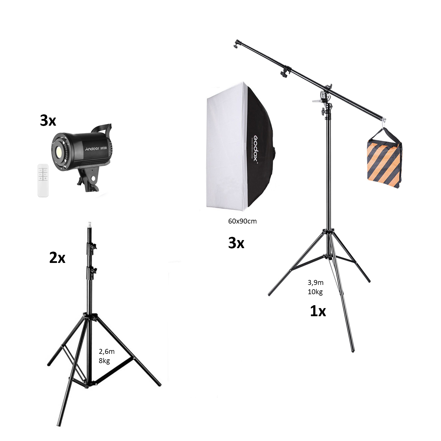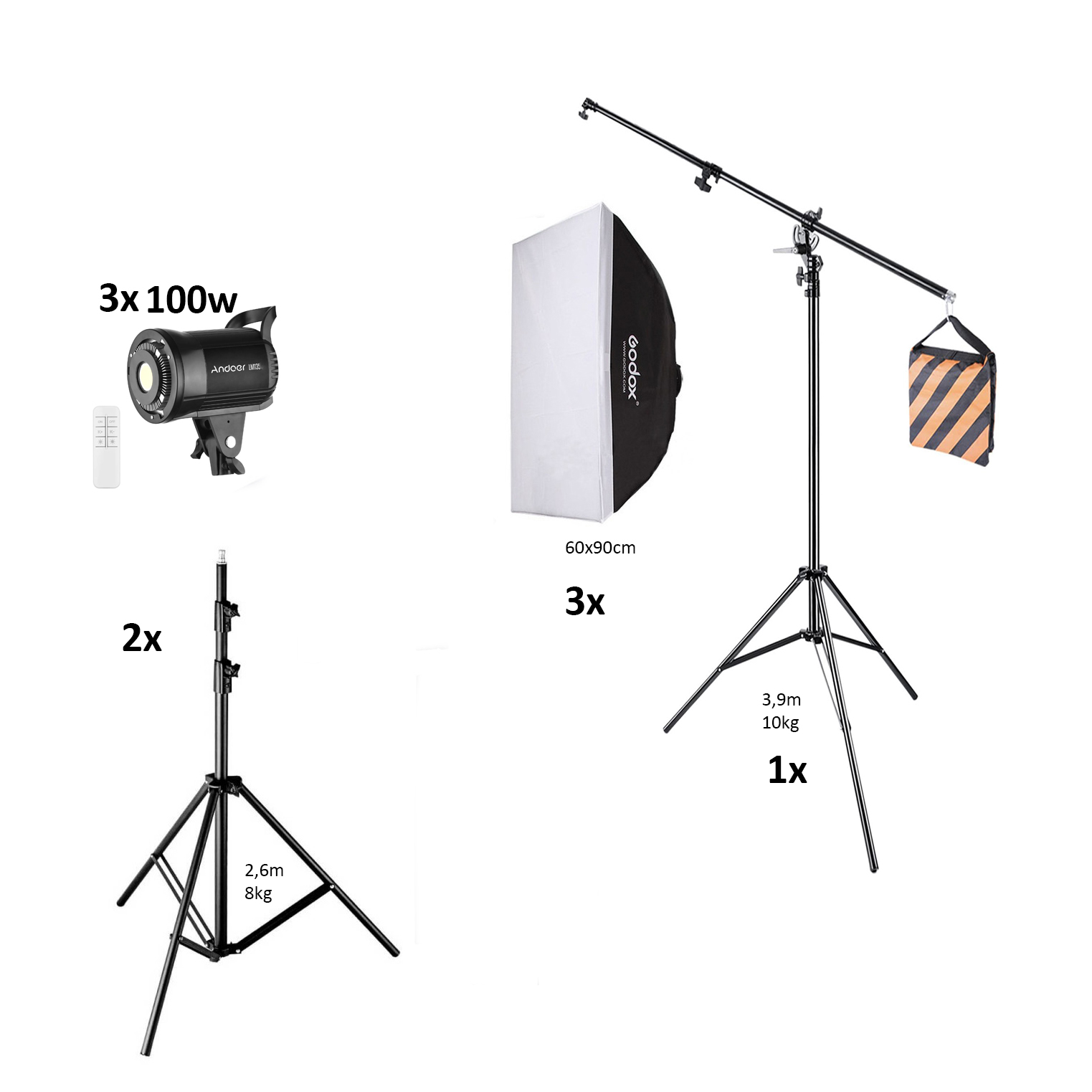 Pack iluminação estúdio foto e vídeo kit 3 softboxes 60x90 135W bicolor com comando