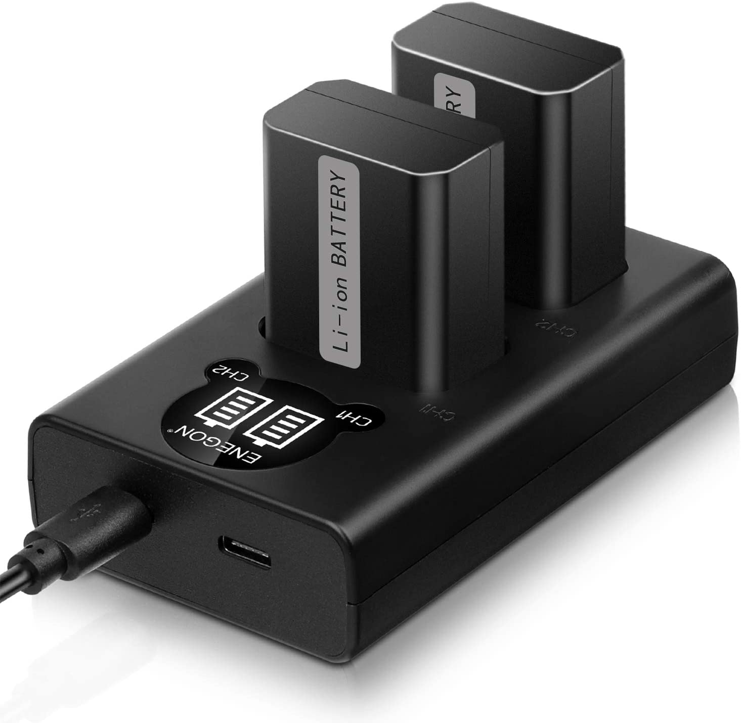 Kit de 2 baterias + carregador para câmara fotográfica da marca Canon, Nikon, Sony, entre outras marcas.