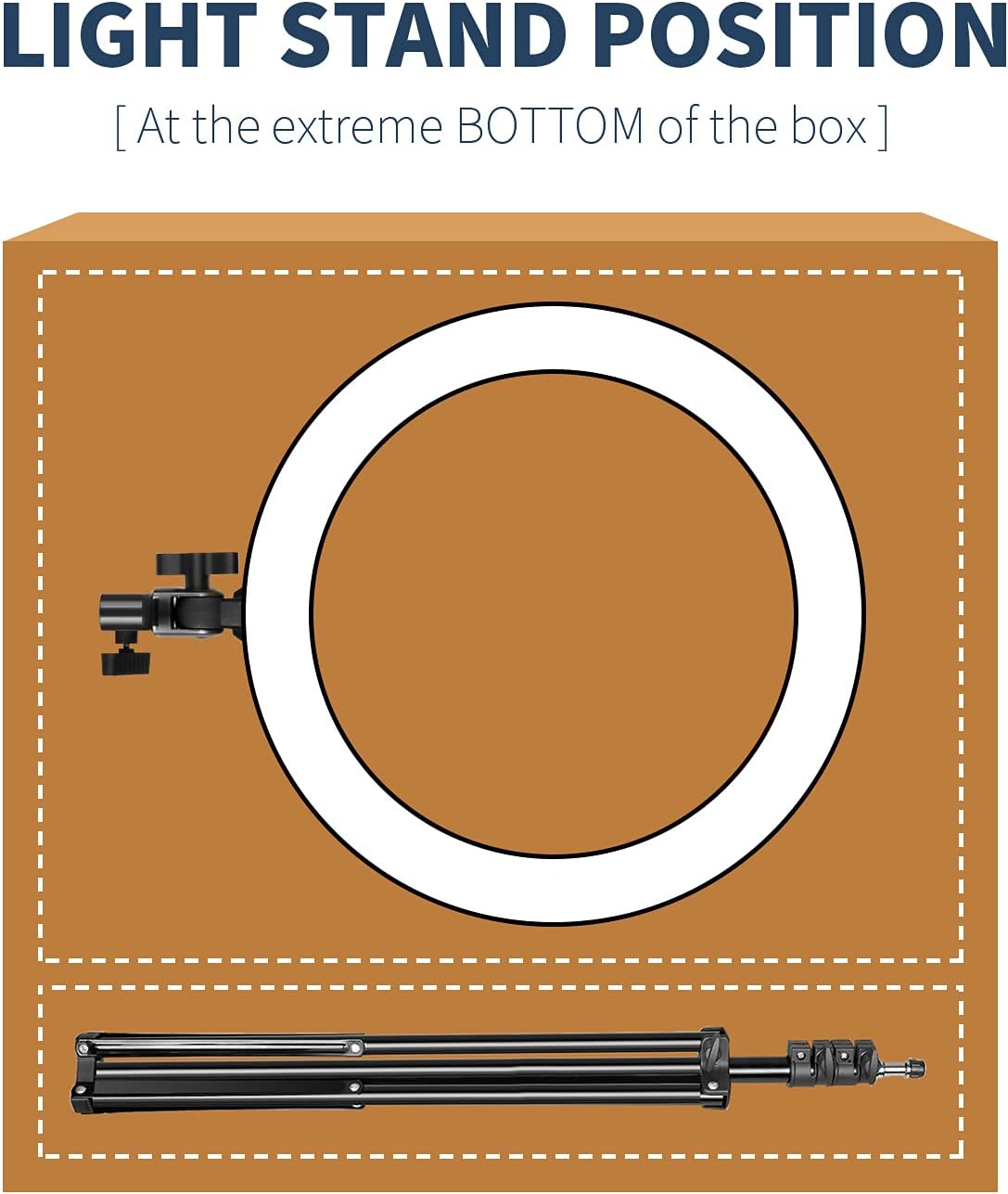 Incluído: Anel 46cm ou 53cm bicolor LED; 2 baterias F550; Carregador baterias; Comando Bluetooth; Bolsa para o anel; Suporte de telemóvel; Fonte alimentação; Suporte rotativo para DSLR.