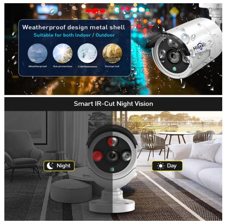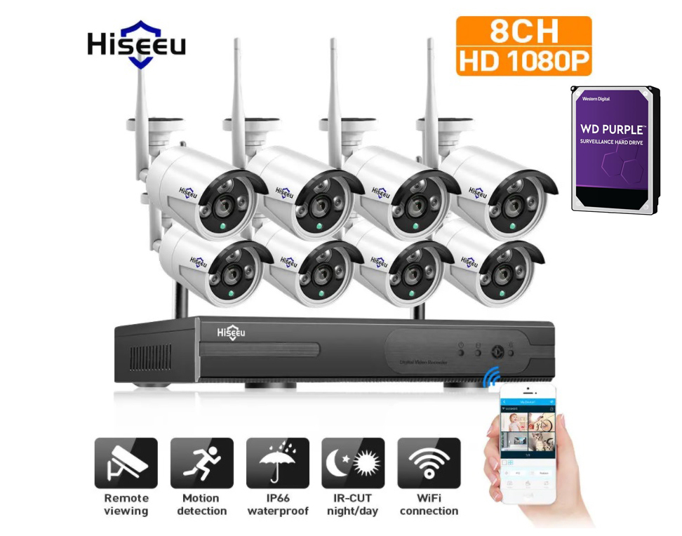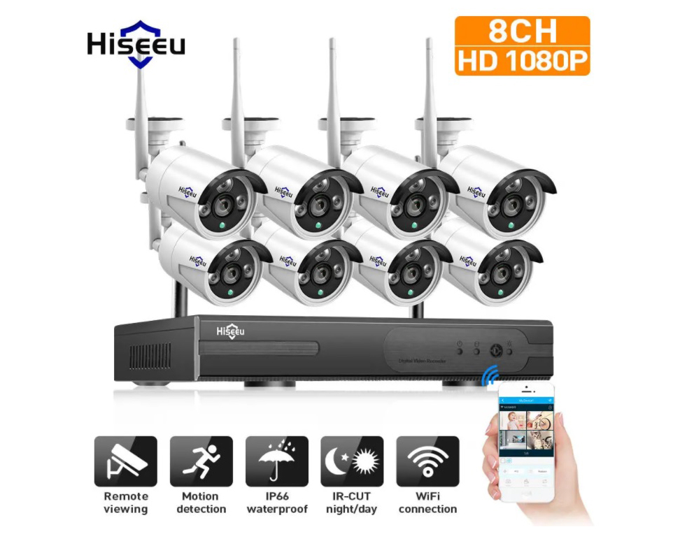 Sistema Wi-FI video vigiIância 3MP kit CCTV Hiseeu 8CH 8 câmaras + NVR app
