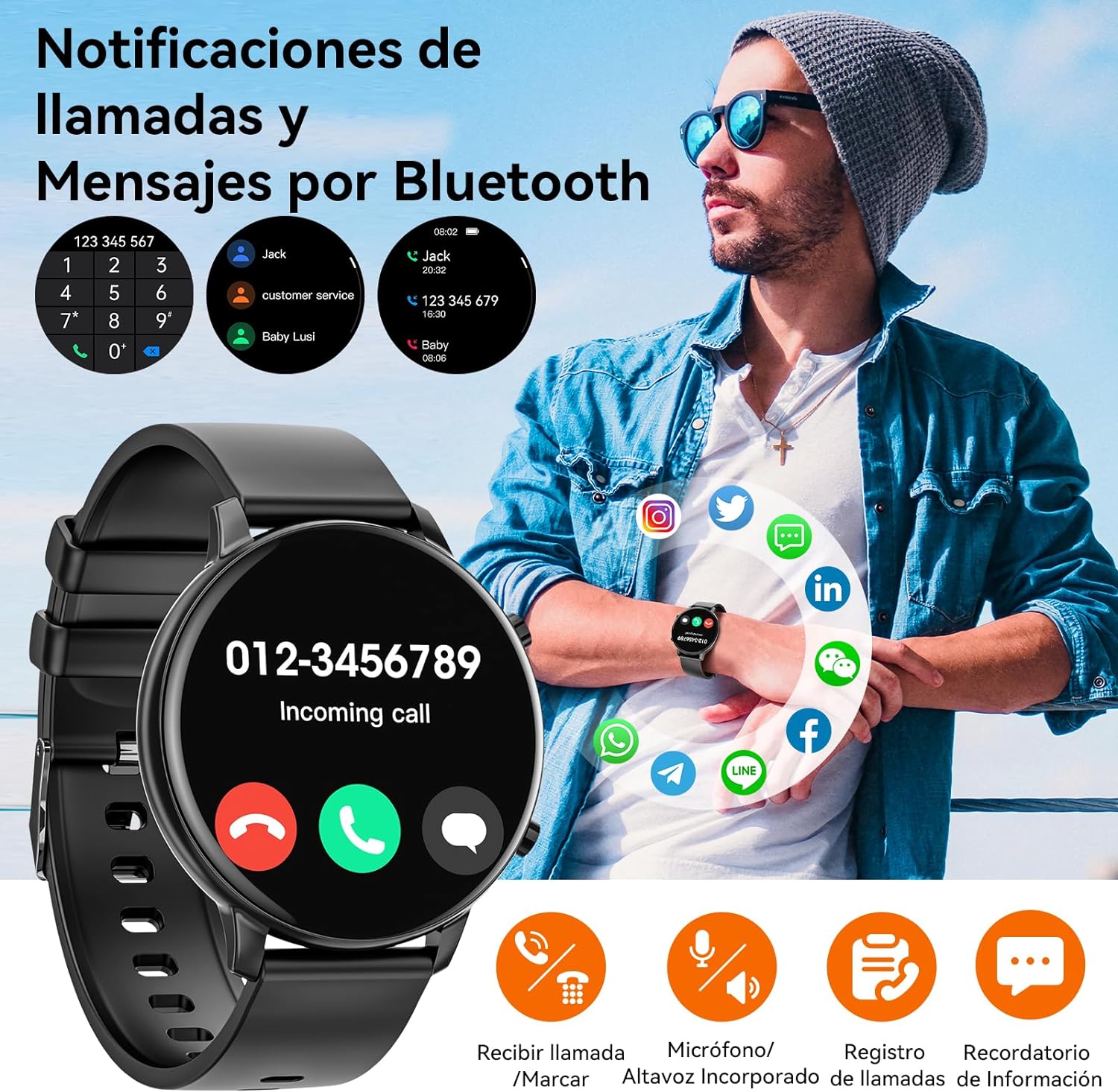 Chamadas Bluetooth e notificações inteligentes: possui um microfone incorporado e um altifalante de alta fidelidade, e pode fazer / receber chamadas diretamente.