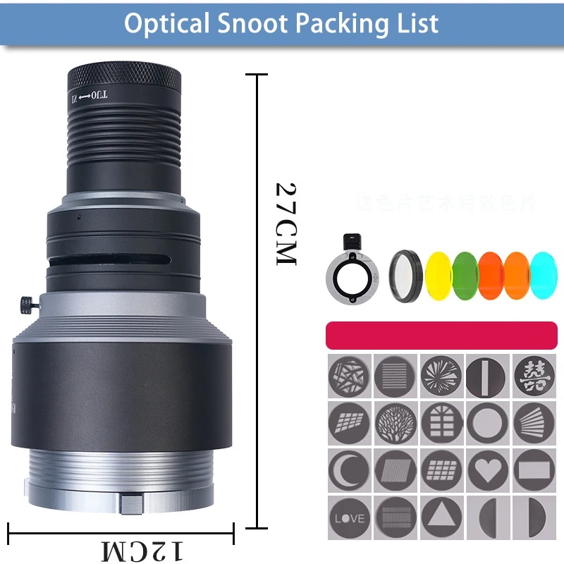 Destacar detalhes: O feixe de luz concentrado pode ser usado para destacar detalhes específicos de um objeto ou cena. Criar efeitos dramáticos: O snoot cónico pode ser usado para criar efeitos dramáticos, como sombras fortes e contrastes nítidos. Isolar o sujeito: O feixe de luz concentrado pode ser usado para isolar o sujeito do fundo, criando um efeito de vinheta.