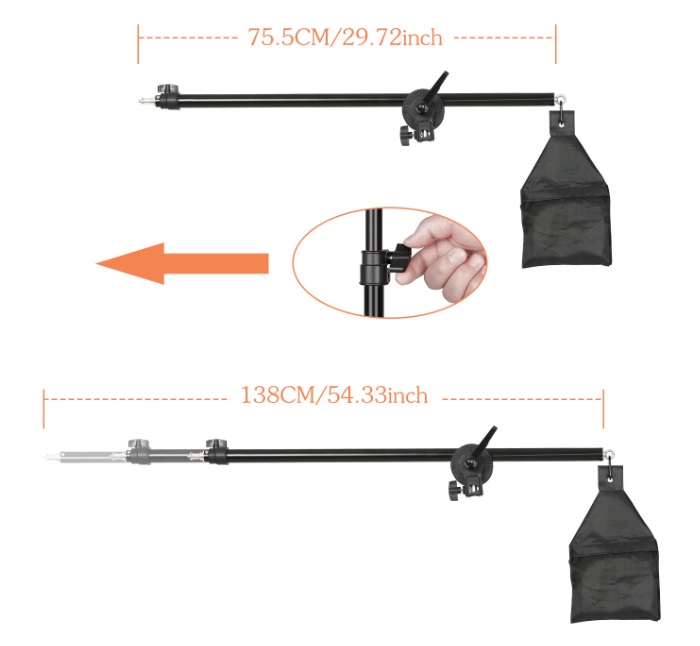 braço extensível acoplado de 75 cm a 139 cm