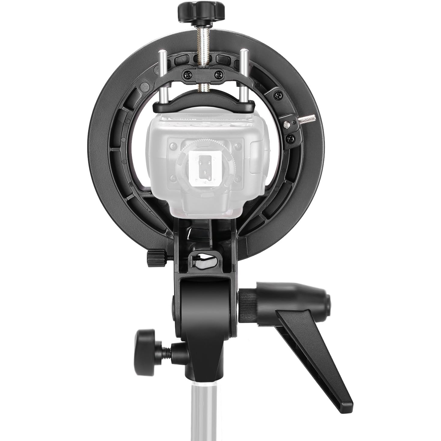 Montagem confiável: assinatura de pinça com 2 peças de plástico macio, sem pressão nem metal riscar o speedlite