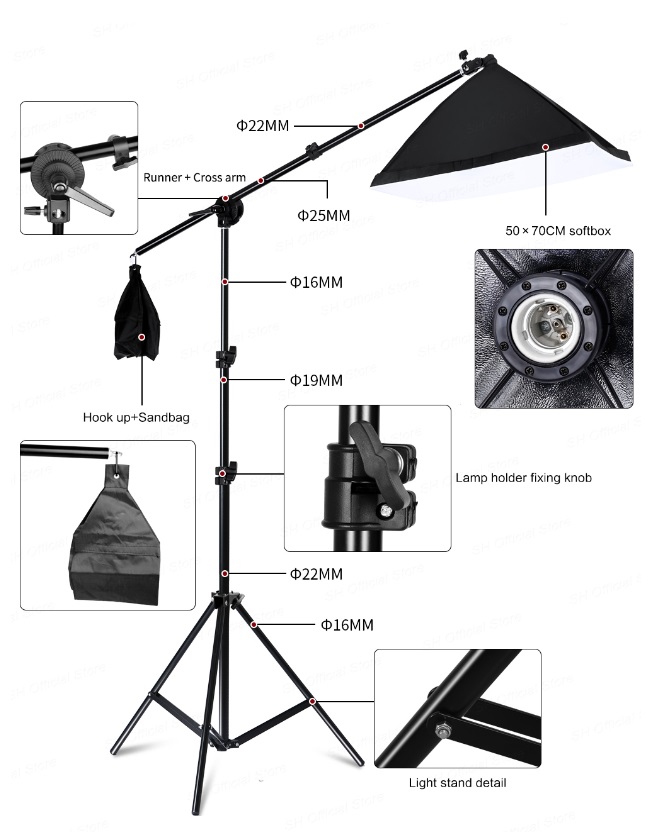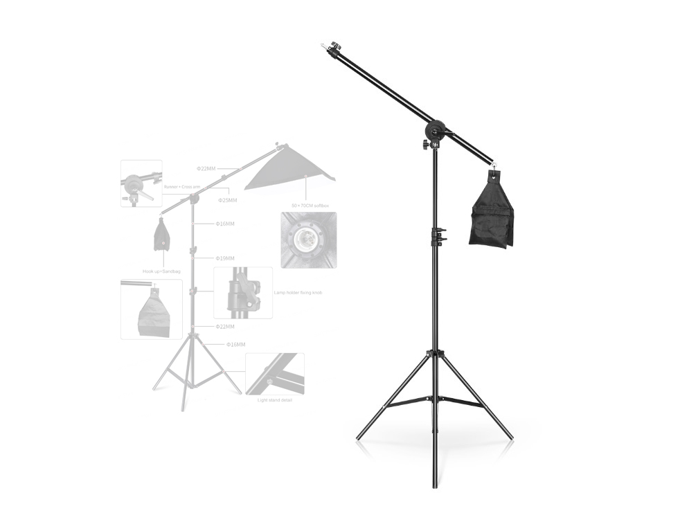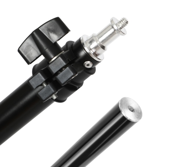 Apto para estúdio, podendo acoplar vários tipos de suporte de iluminação. Softboxes, sombrinhas, flashes, etc.