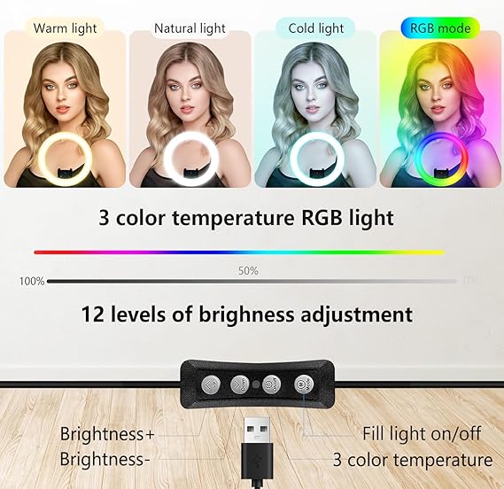 Cores RGB vibrantes e 12 níveis de brilho. Ajuste perfeitamente a cor e o brilho para satisfazer as suas necessidades em diferentes ambientes e obter a iluminação perfeita para as suas fotos.